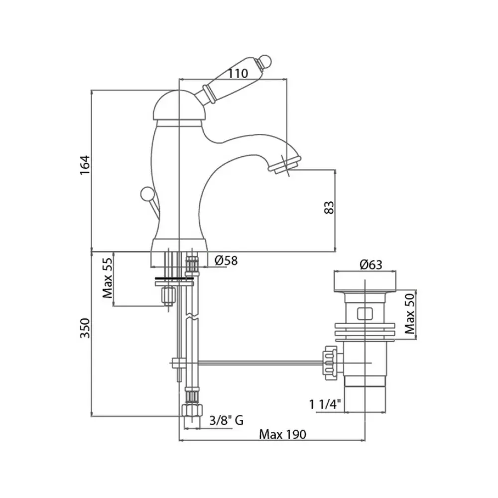 Змішувач, Гнучкий підвід, Донний клапан, Кріплення