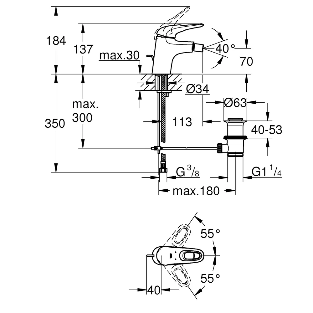 Поворотний аератор. Є можливість додатково обмежувати температуру.