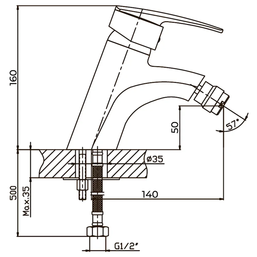 Аератор Neoperl, гнучка підводка з нержавіючої сталі (450 мм, 1/2")