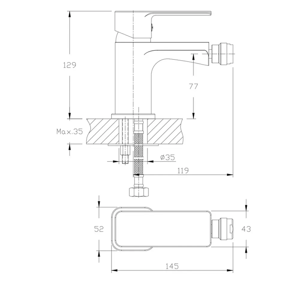 Висота змішувача (мм)