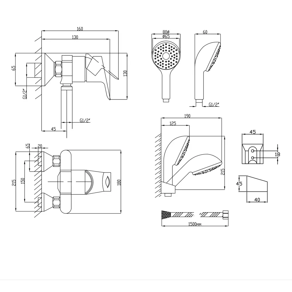 Змішувач, Лійка для ручного душу, Душовий шланг, Тримач для душу, Кріплення