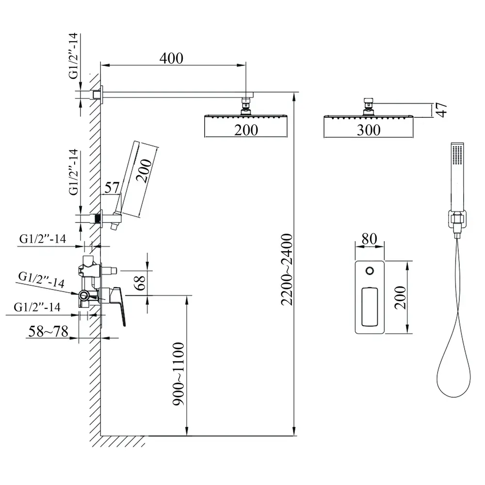 Смеситель для душа TOPAZ LEXI TLG 21205-H57-BL, встроенный, душевой комплект