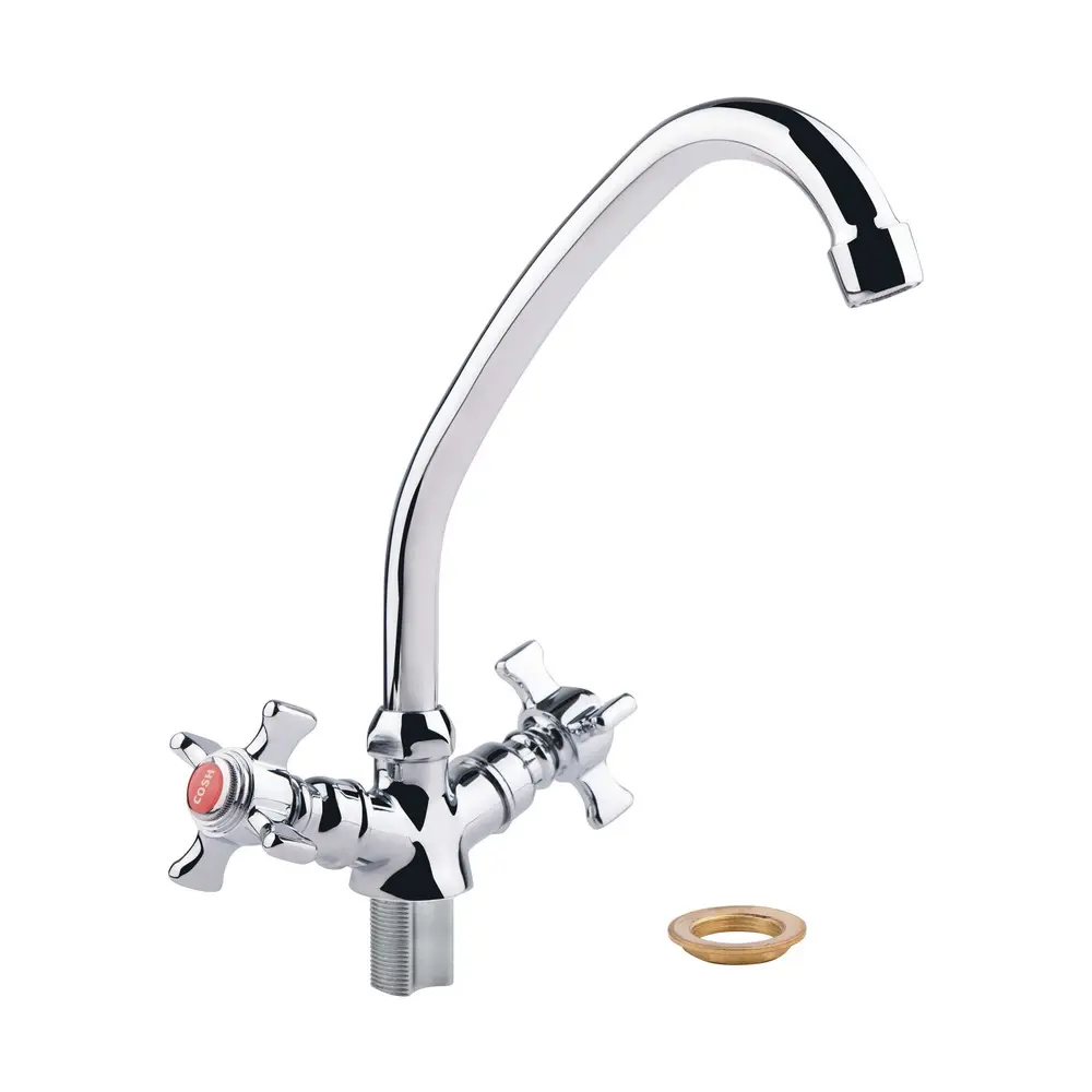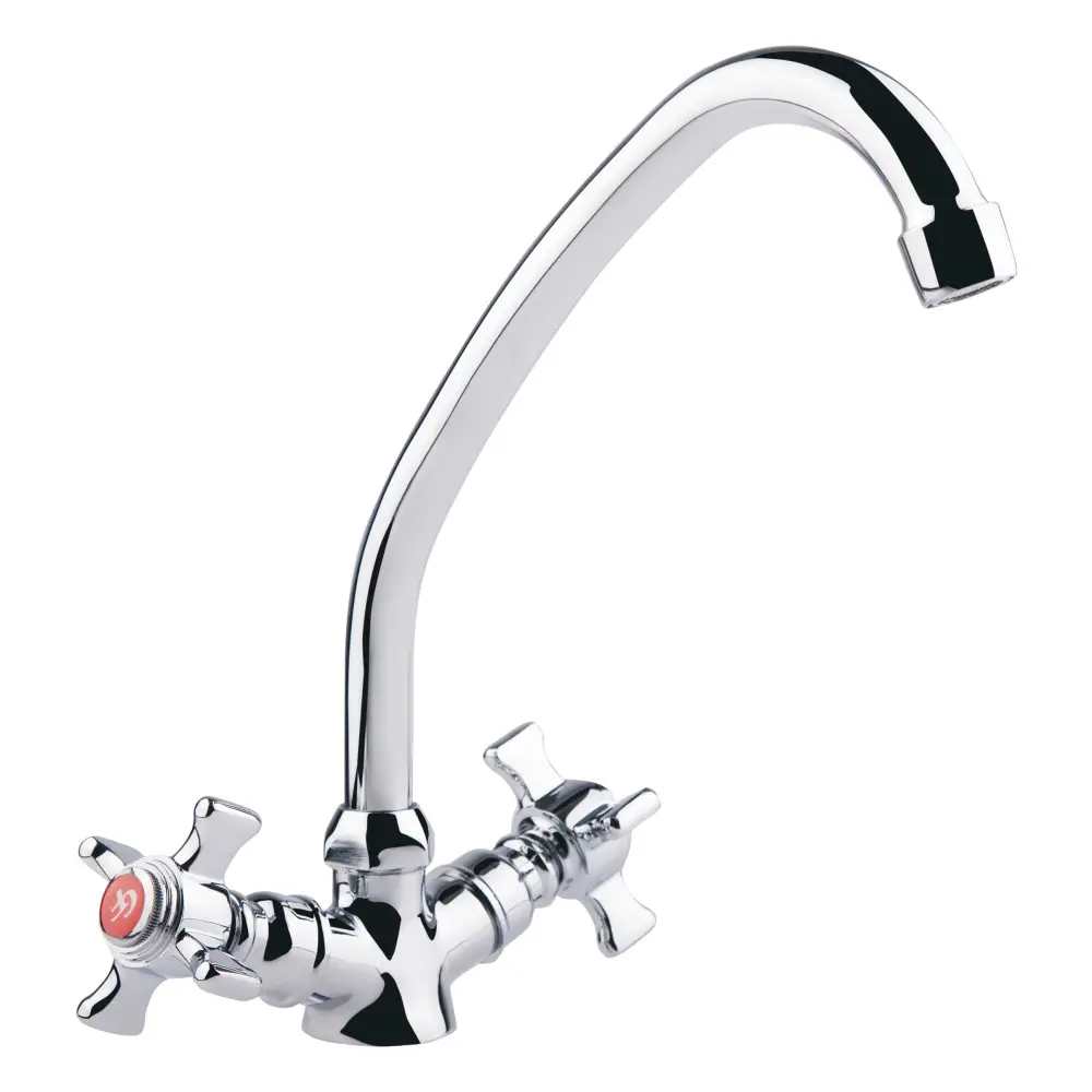 Смеситель для кухни GF (CRM) S-22-271AF изготовлен из силумина. Благодаря глянцевой хромированном покрытию имеет оригинальный внешний вид. Выполненный в классическом стиле, с вентильными ручками для переключения потока холодной и горячей воды.