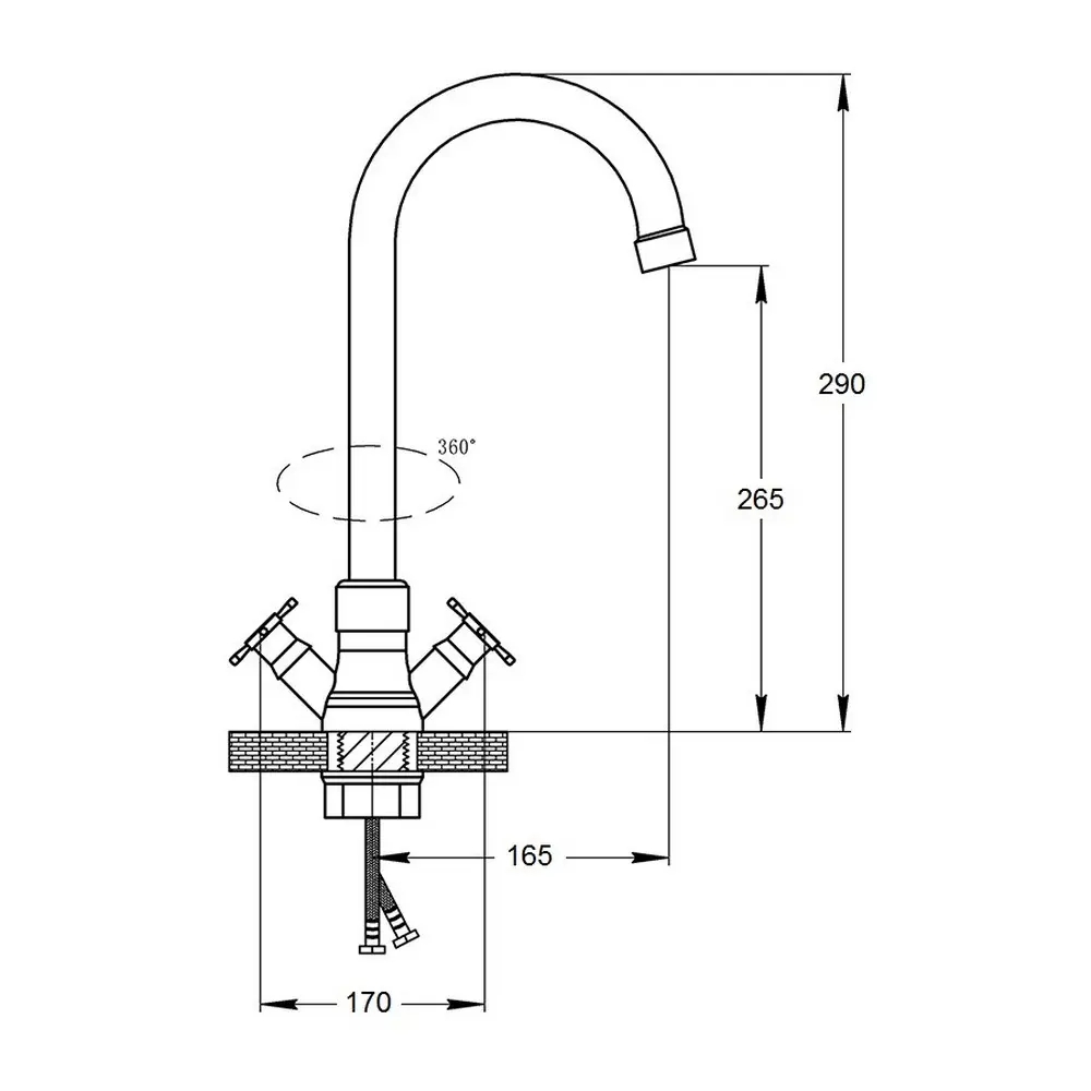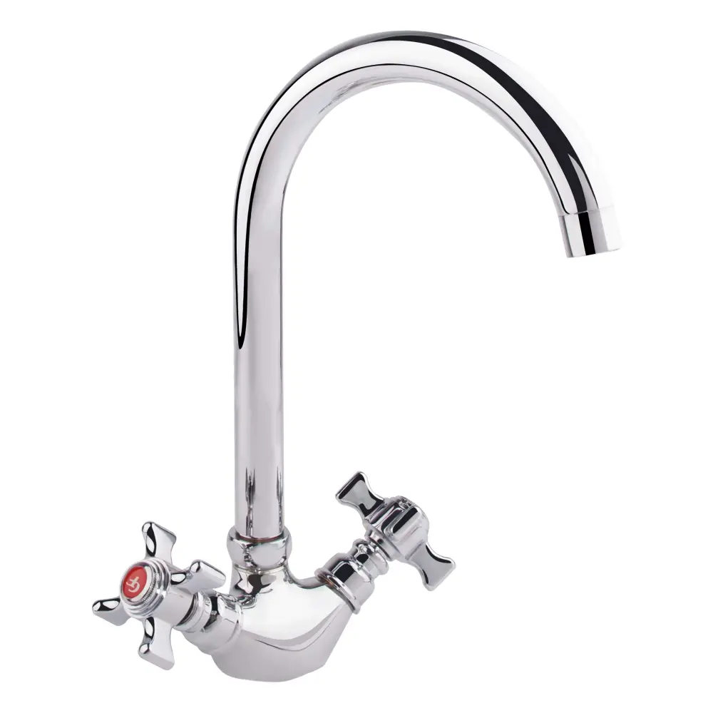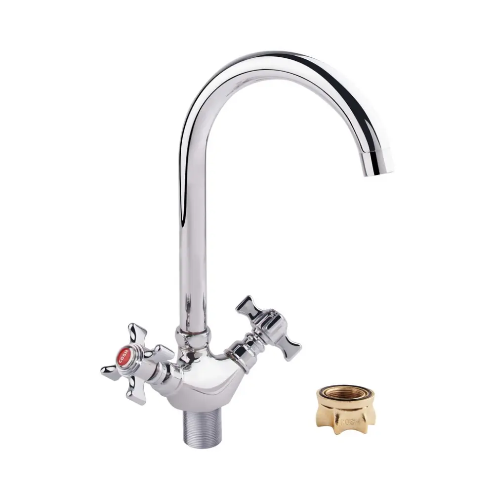 Смеситель для кухни GF (CRM) S-22-278F изготовлен из силумина. Благодаря глянцевой хромированном покрытию имеет оригинальный внешний вид. Выполненный в классическом стиле, с вентильными ручками для переключения потока холодной и горячей воды.
