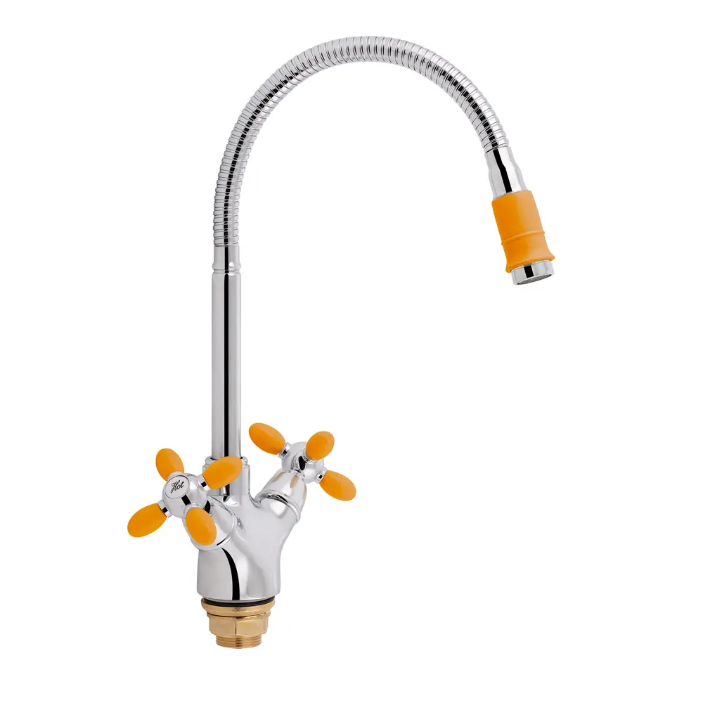 Смеситель для кухни с рефлекторным излиянием Lidz (OCR) 74 18 273F-4мае глянцевую блестящую поверхность, которая выглядит эстетично и подходит под любой интерьер комнаты, рефлекторный спиралевидные излив, который сделает вашу жизнь комфортнее и аэратор, который снизит количество хлора в воде и сделает ее мягче. Смеситель монтируется в отверстие для смесителя в столешнице врезным способом. Напор воды и ее температура регулируются поворотом вентелей в необходимое положение.