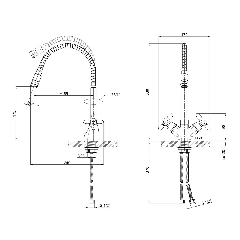 Змішувач, Гнучкий підвід, Кріплення
