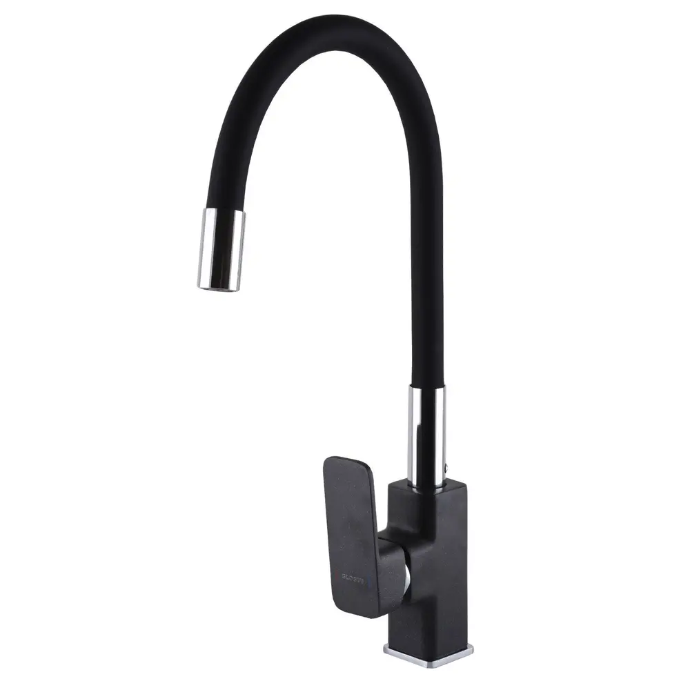 Смеситель Globus Lux MILANO GLM-203LR-1-ONIX на гайке для кухни c черным гофро-гусем