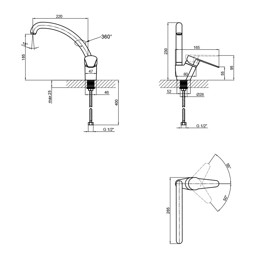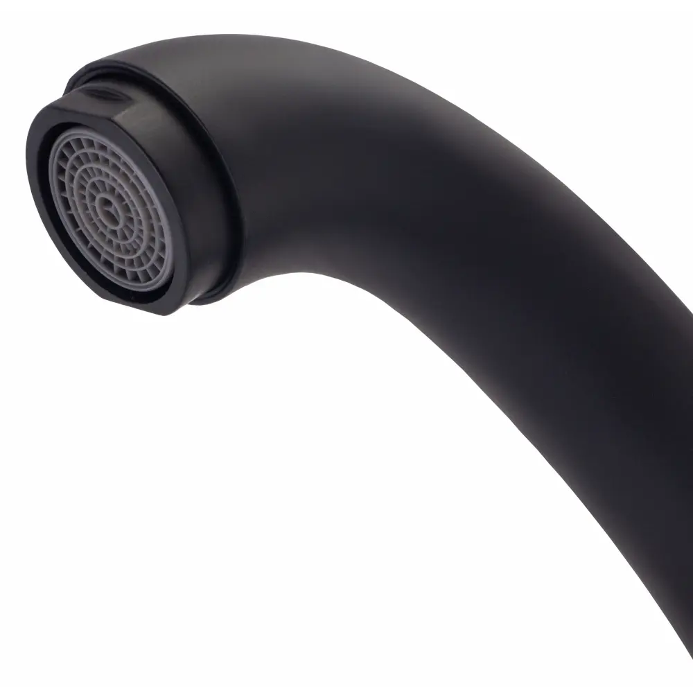 Смеситель для кухни Lidz (BLA) 14 43 008F-3 имеет матовую поверхность черного цвета, благодаря которой выглядит оригинально. Смеситель выполнен в классическом стиле, с высоким С-изливом и удобной ручкой для переключения холодной и горячей воды.