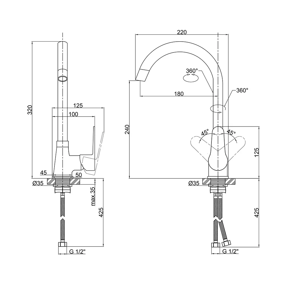 Змішувач, Гнучкий підвід, Кріпильні деталі