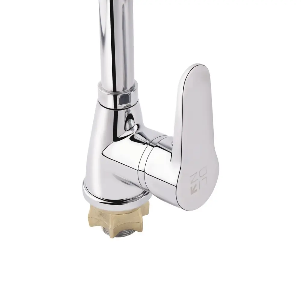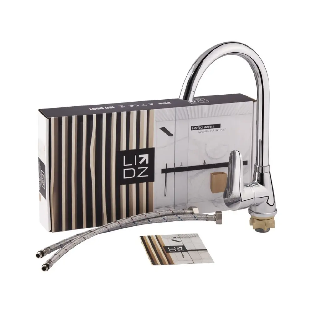 Смеситель для кухни с высоким поворотным изливом Lidz (CRM) 14 34 014F-8 позволит набрать воду в высокую посуду, а благодаря глянцевой блестящей поверхности выглядит эстетично и подойдет к любому интерьеру комнаты. Он монтируется в отверстие для смесителя на столешнице или на мойке врезным способом. Напор воды и ее температура регулируются поворотом рычага в нужное положение. Он нанесена маркировка Х + Г воды и фирменный логотип производителя.