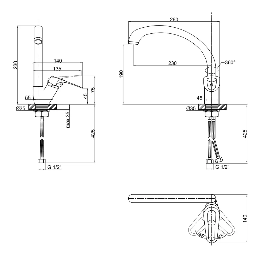 Змішувач, Гнучка підводка, Кріплення