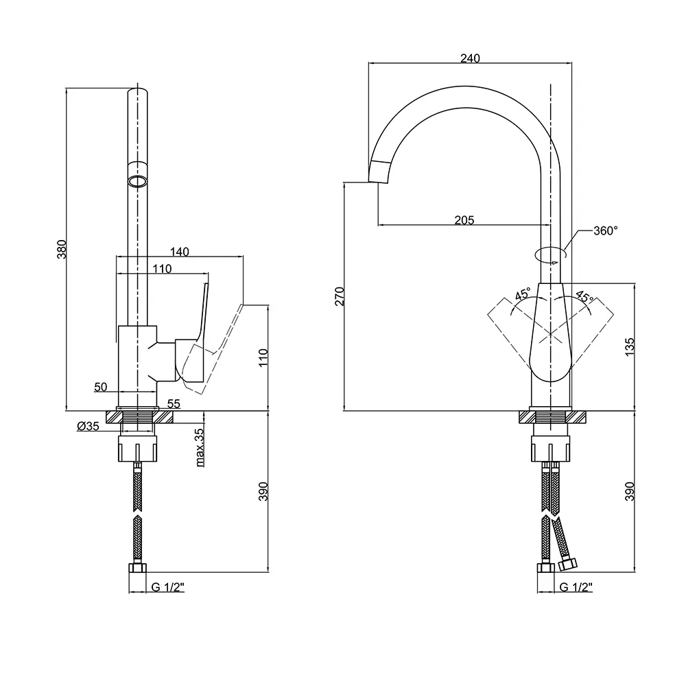 Змішувач, Гнучкий підвід, Кріпильні деталі