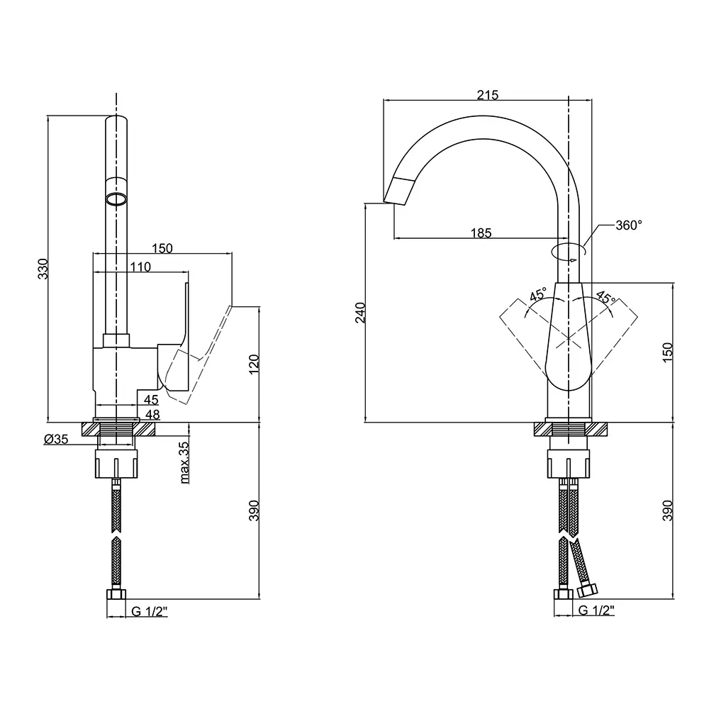 Змішувач, Гнучка підводка, Кріплення