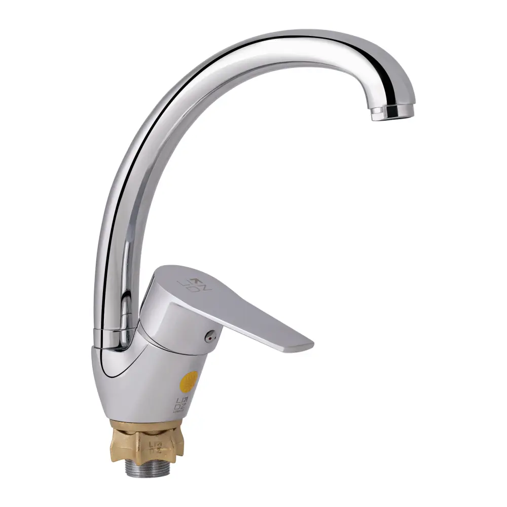 Смеситель для кухни Lidz (CRM) 40 87 008F-3 изготовлен из цинка. Благодаря глянцевой хромированном покрытию имеет оригинальный внешний вид. Смеситель выполнен в классическом стиле и идеально дополнит интерьер кухни. Удобный рычаг позволяет легко регулировать поток смешанной воды.