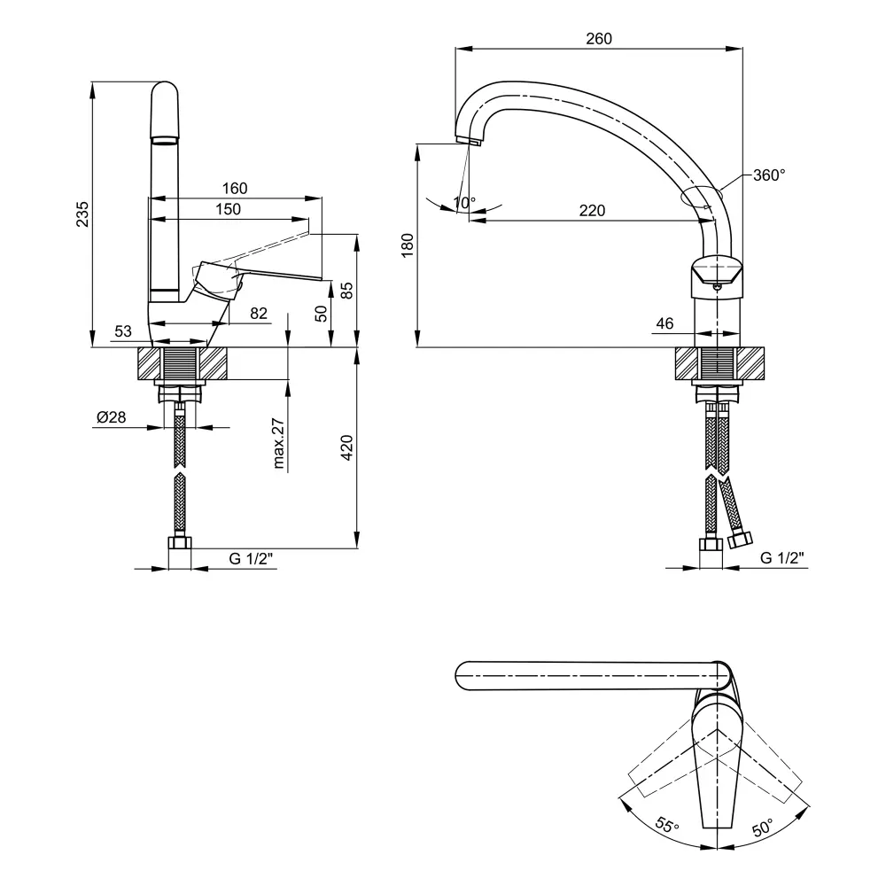 Змішувач, Гнучкий підвід, Кріпильні деталі