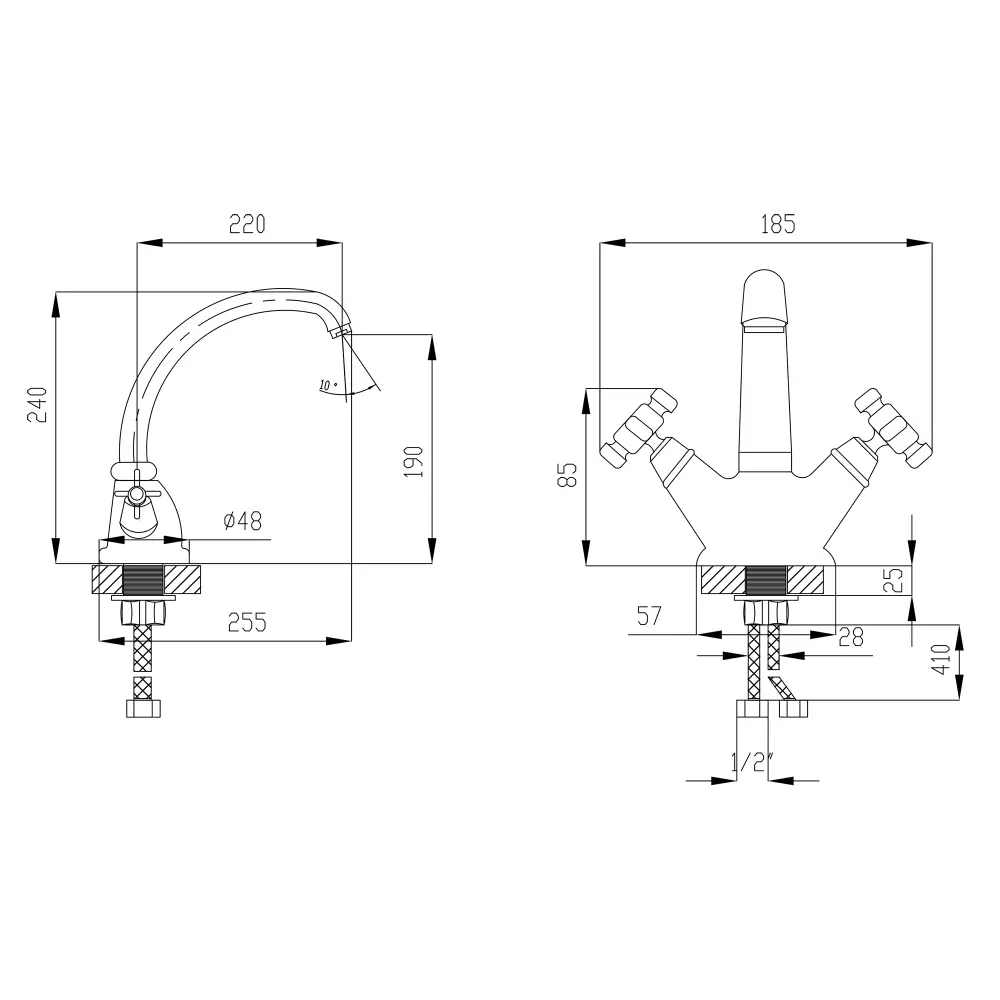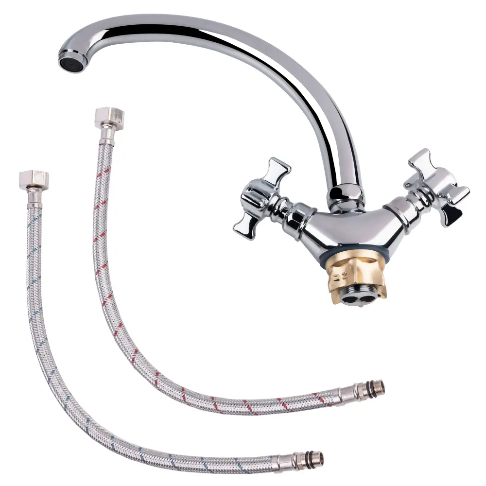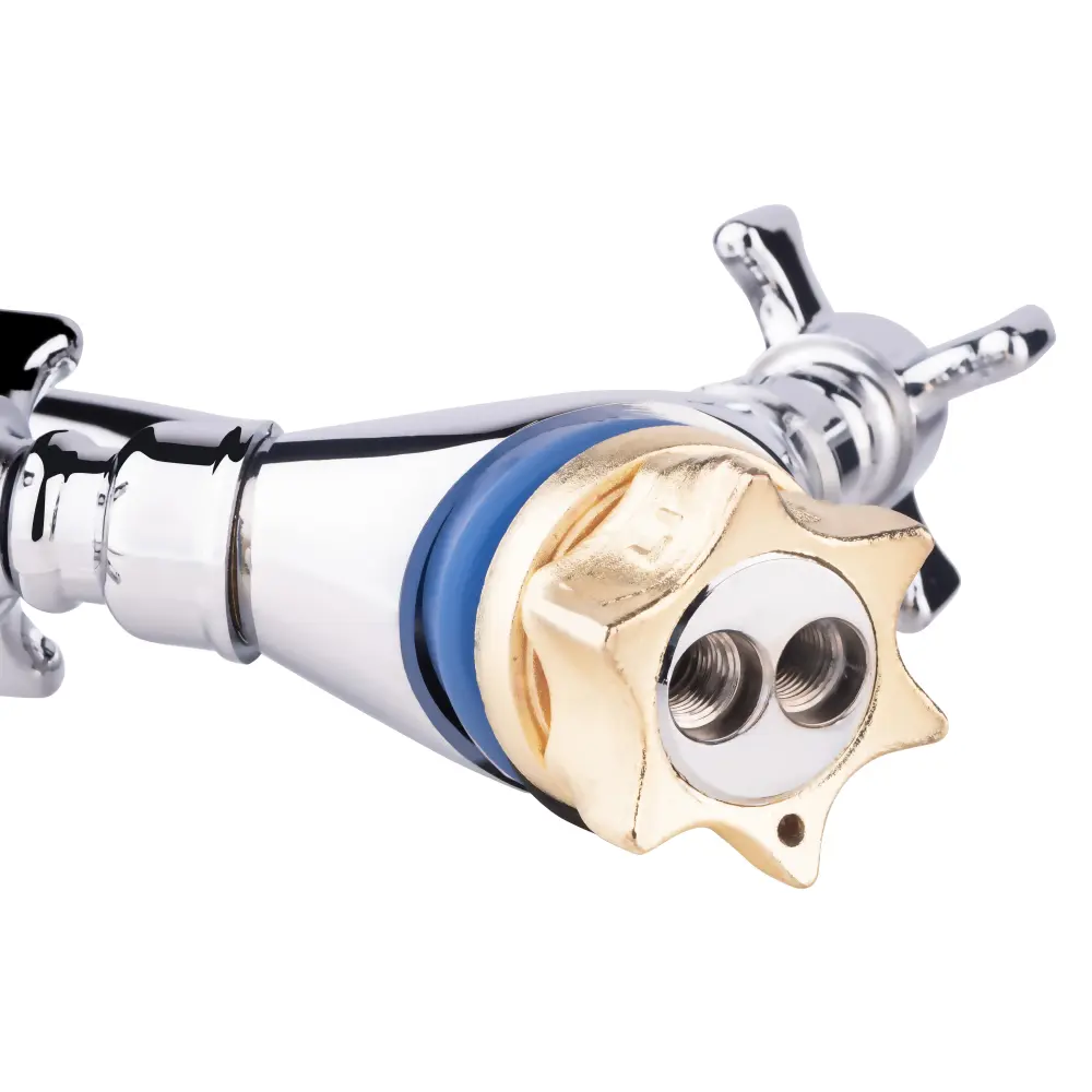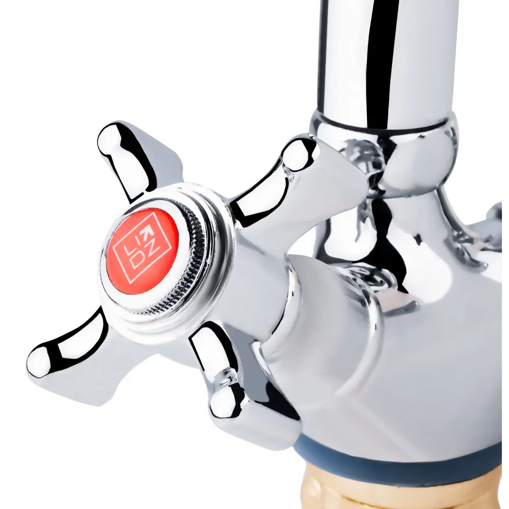 Смеситель для кухни Lidz (CRM) 75 22 271F-3 будет выглядеть эстетично и подойдет под любой интерьер комнаты благодаря глянцевой блестящей поверхности. Он изготовлен из высококачественной латуни. Изделие монтируется в отверстие для смесителя на столешнице или на кухонной мойке врезным способом. Напор воды и ее температура регулируются поворотом двух удобных вентилей в необходимое положение.