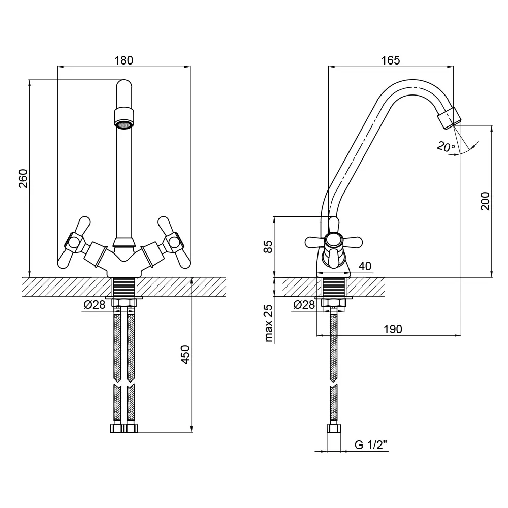 Змішувач, Гнучкий підвід, Кріплення