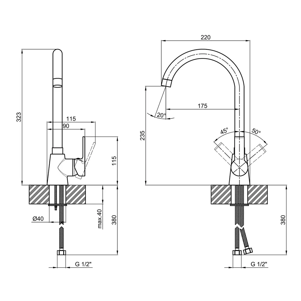 Змішувач, Гнучкий підвід, Кріпильні деталі