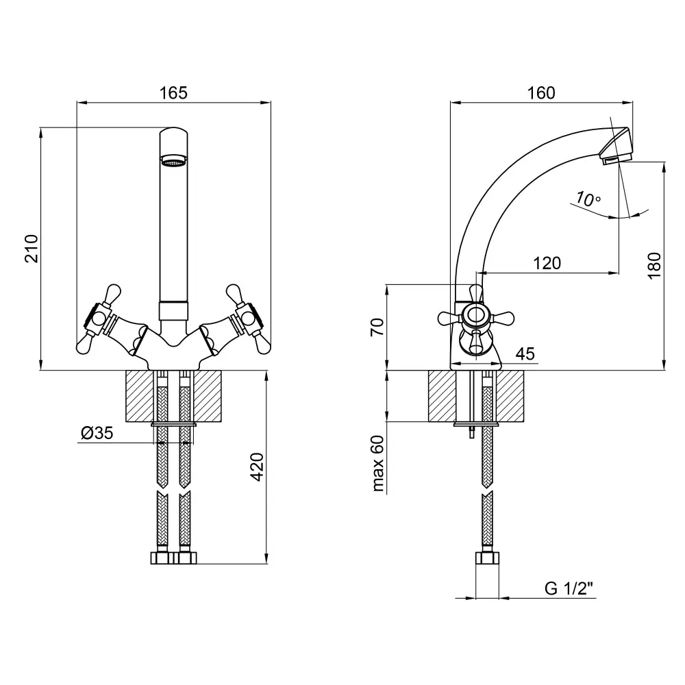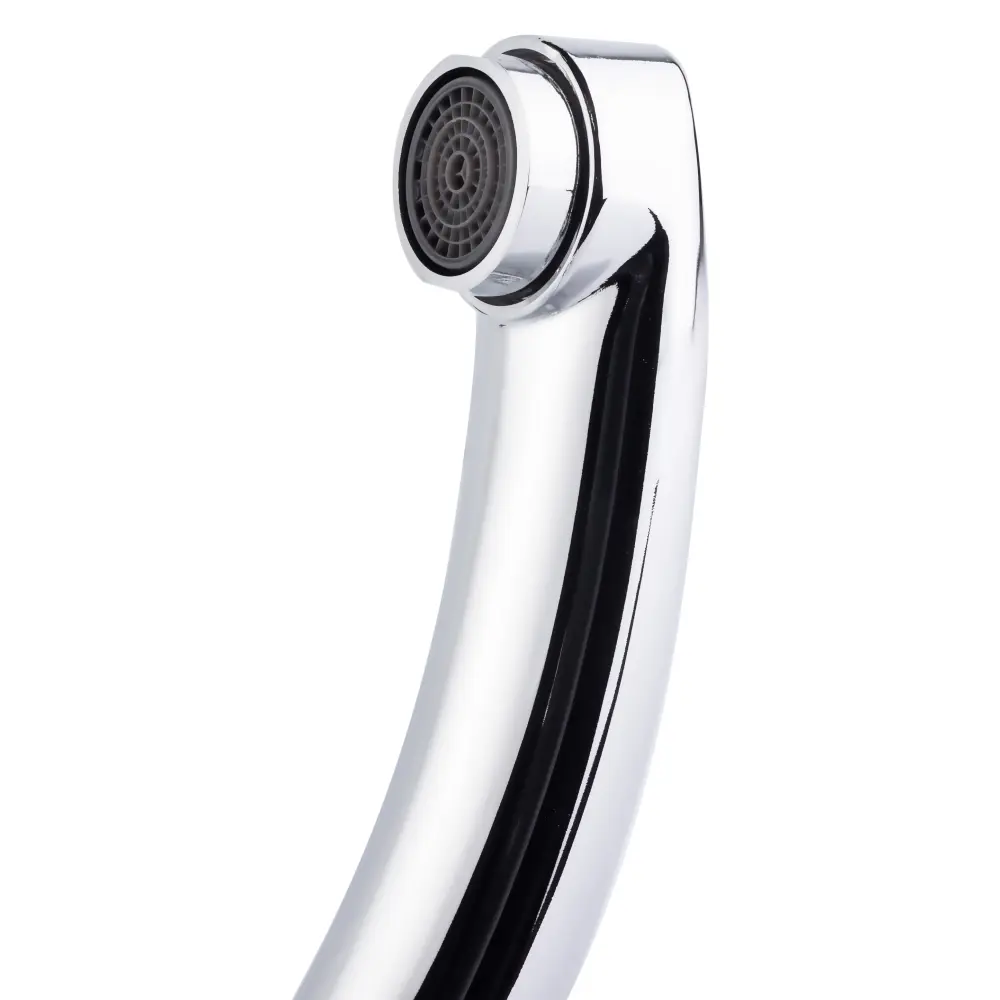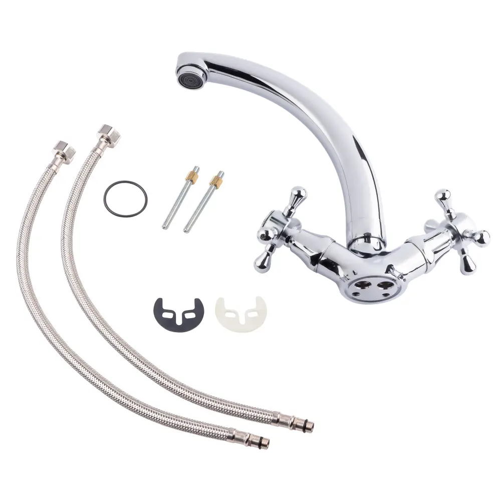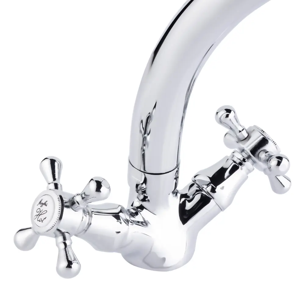 Смеситель для кухни с поворотным изливом Lidz (CRM) Mayfair 16 272-2 выполнен из прочной латуни с глянцевой блестящей поверхностью. Он монтируется в отверстие в кухонной мойке или в столешницу врезным способом. Подача воды осуществляется благодаря повороту вентилей в необходимое положение. Подключение воды происходит с помощью гибкой подводки, входящей в комплектацию.