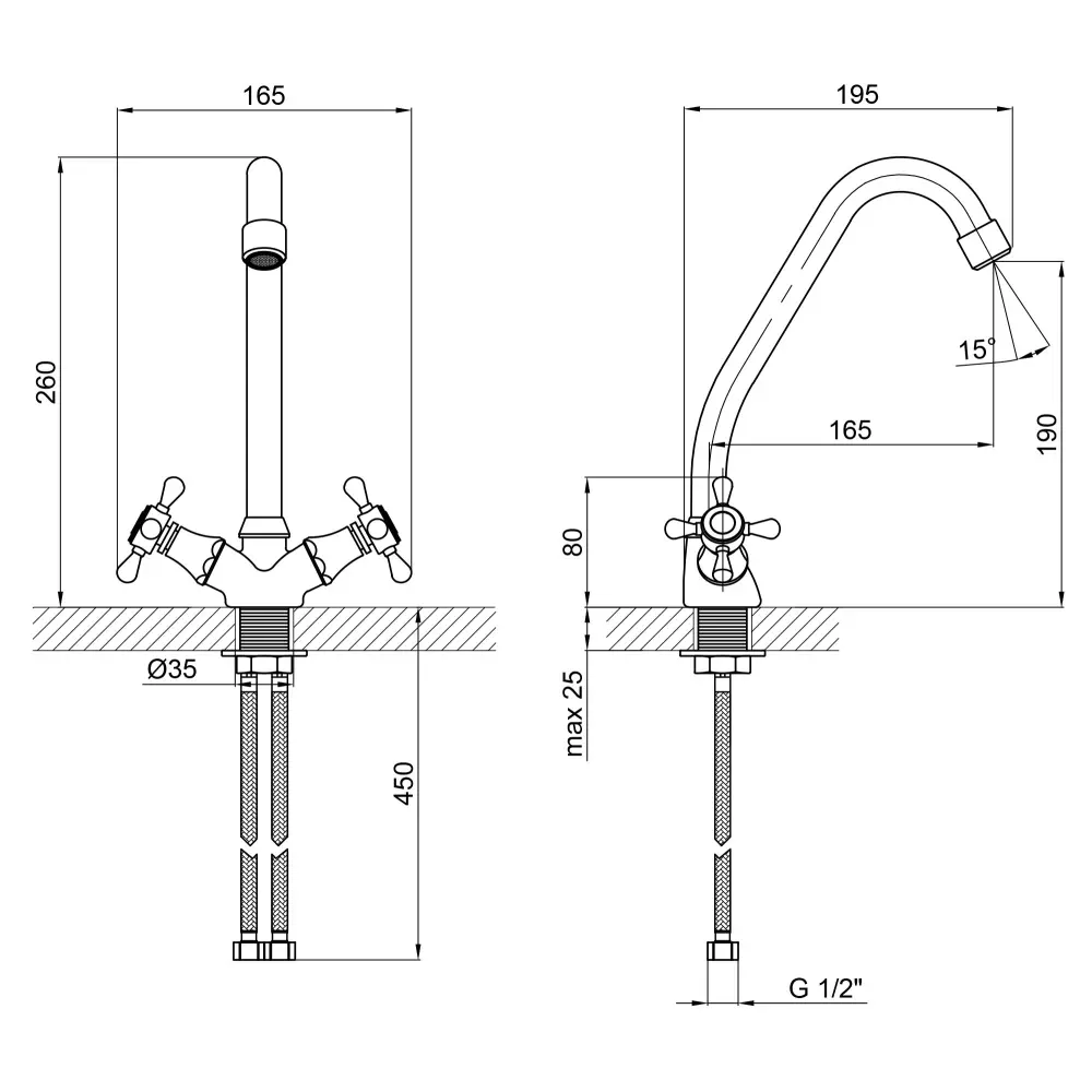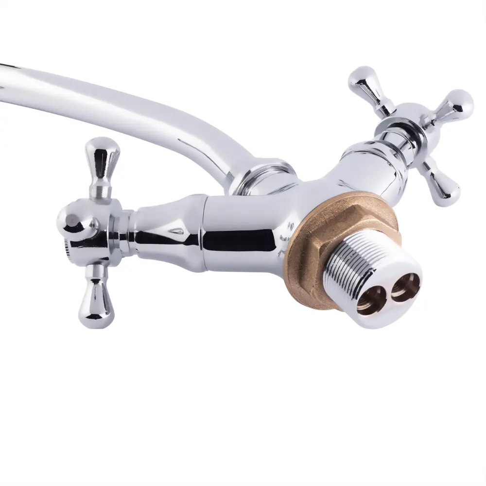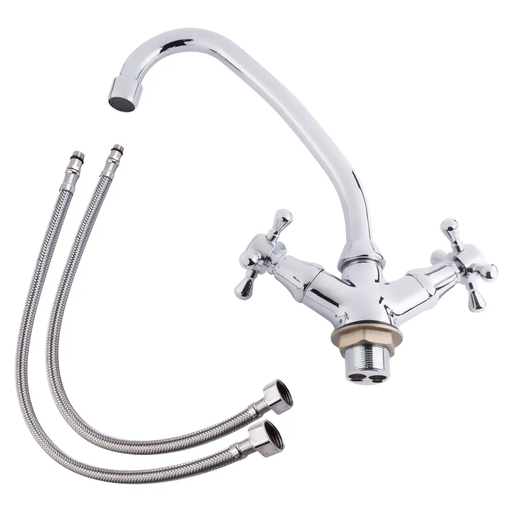 Смеситель для кухни с поворотным изливом Lidz (CRM) Mayfair 16 272F-1 выполнен из прочной латуни с глянцевой блестящей поверхностью. Он монтируется в отверстие в кухонной мойке или в столешницу врезным способом. Подача воды осуществляется благодаря повороту вентилей в необходимое положение. Подключение воды происходит с помощью гибкой подводки, входящей в комплектацию.