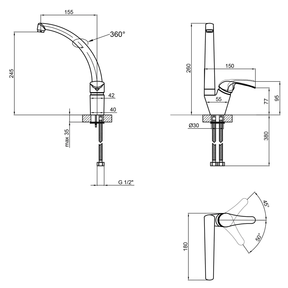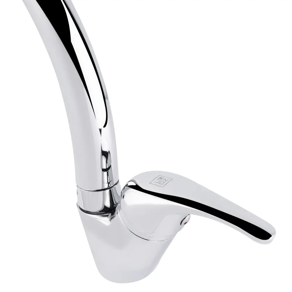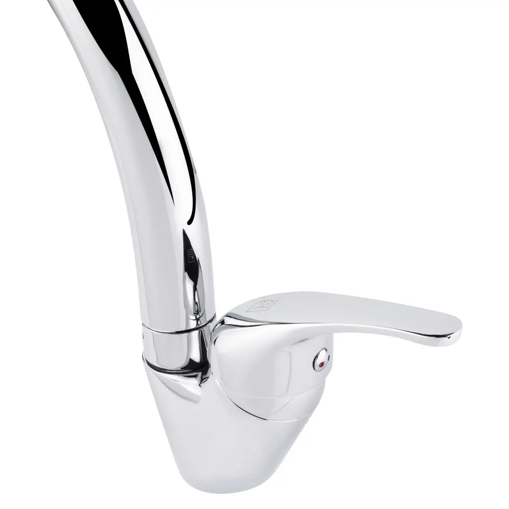 Смеситель для кухни Lidz (CRM) Smart 39 008-9 выполнен из прочной латуни с глянцевой блестящей поверхностью. Он монтируется в отверстие в кухонной мойке или в столешницу врезным способом. Подача воды осуществляется благодаря картриджа после поворота рычага в нужное положение. Подключение воды происходит с помощью гибкой подводки, что входит в комплектацию.