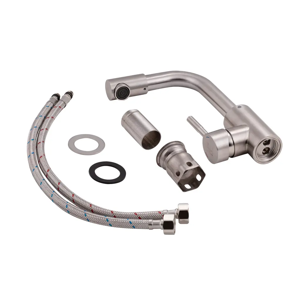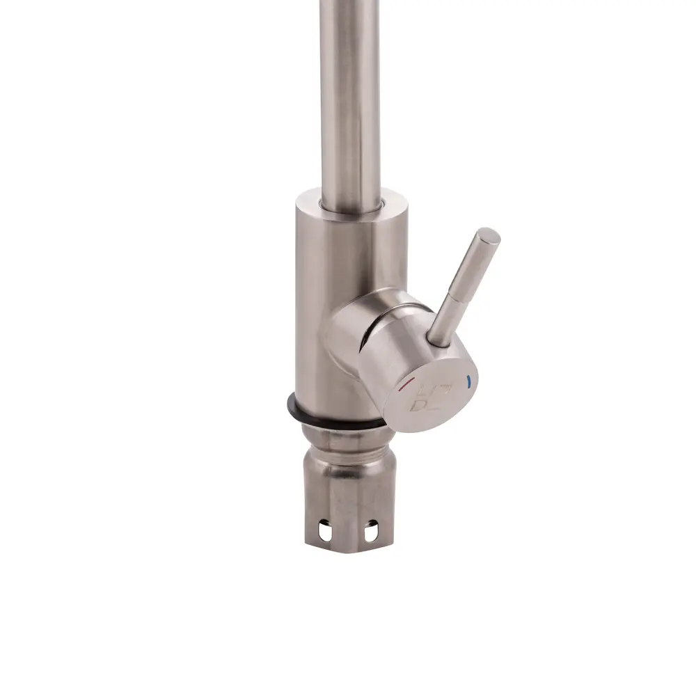 Смеситель для кухни Lidz (NKS) 12 32 015F-12 изготовлен из нержавеющей стали. Благодаря брашований поверхности имеет оригинальный внешний вид. Выполнен в современном сдержанном стиле. Такой смеситель не только удобный и практичный, но и идеально дополнит интерьер кухни. После вытачивания изделия не проходят дополнительное шлифование, незначительные царапины считаются нормой и не является браком.