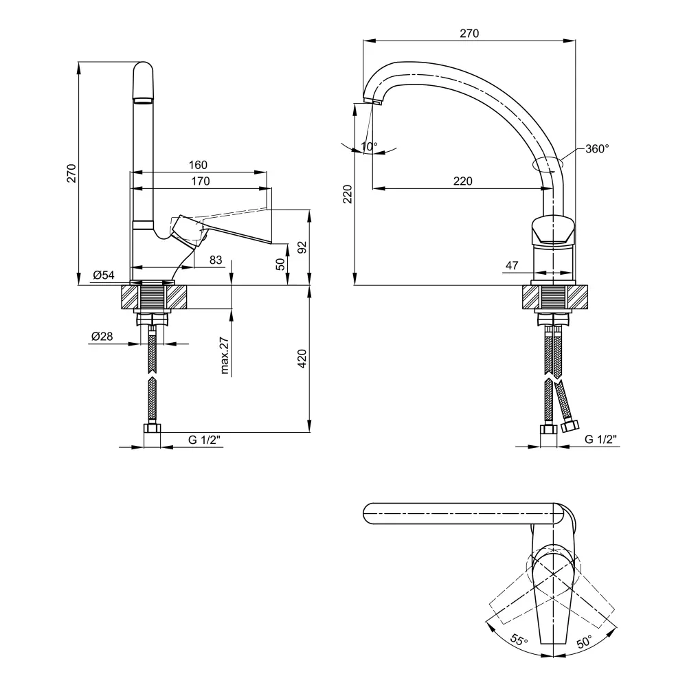Змішувач, Гнучкий підвід, Кріпильні деталі