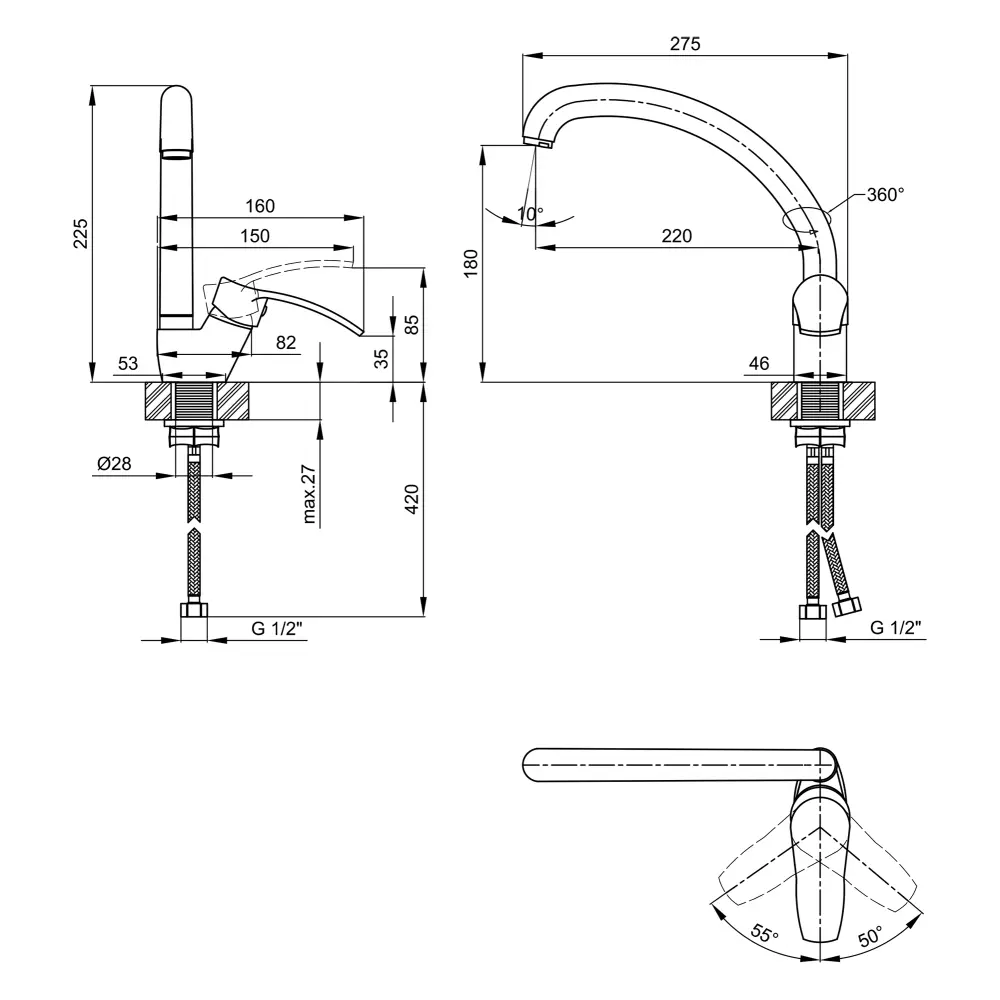 Змішувач, Гнучкий підвід, Кріпильні деталі