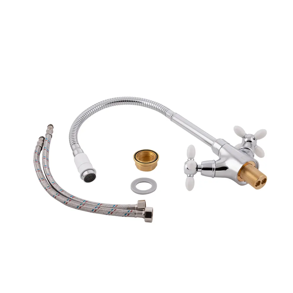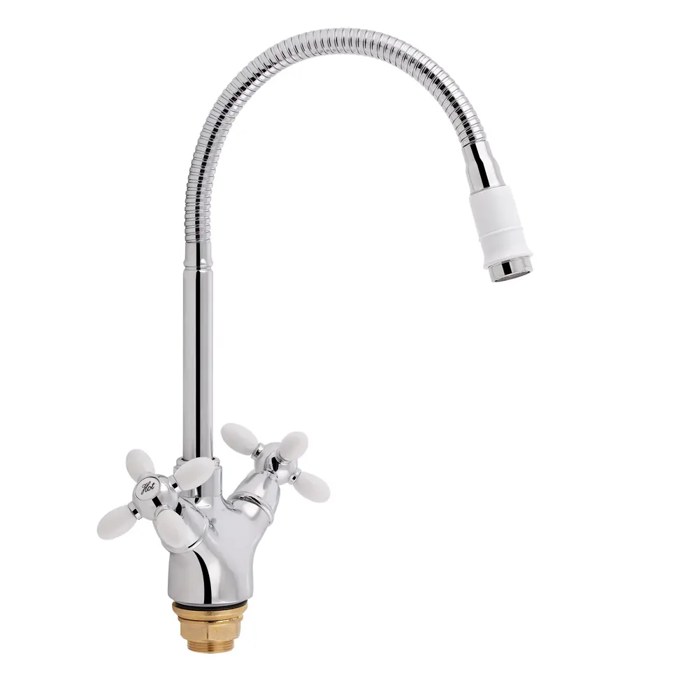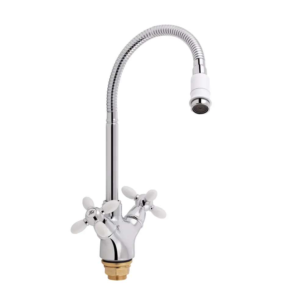 Смеситель для кухни с рефлекторным излиянием Lidz (WHR) 74 18 273F-4 имеет глянцевую блестящую поверхность, которая выглядит эстетично и подходит под любой интерьер комнаты, рефлекторный спиралевидный вылил, который сделает вашу жизнь комфортнее и аэратор, который снизит количество хлора в воде и сделает ее мягче. Смеситель монтируется в отверстие для смесителя в столешнице врезным способом. Напор воды и ее температура регулируются поворотом вентилей в необходимое положение.