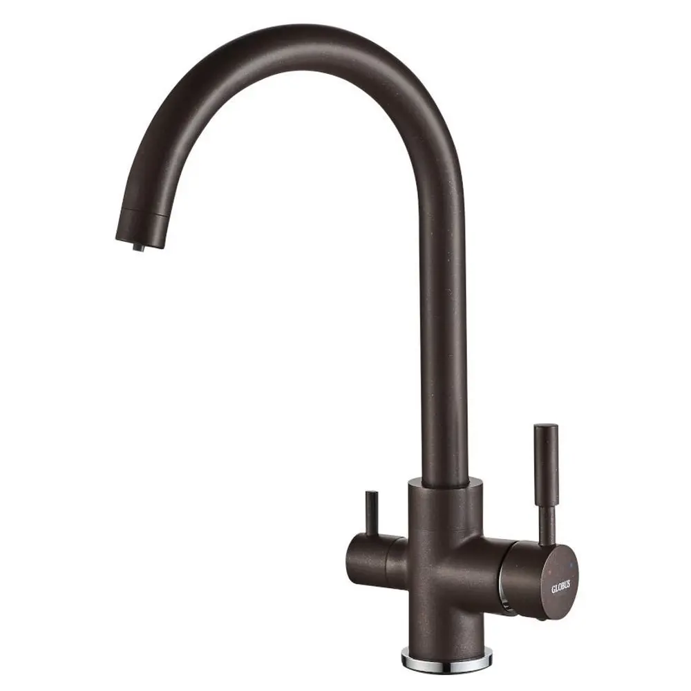 Смеситель GLLR-0333-6-MARONE Globus Lux комбинированный под ОСМОС на гайке, шоколад