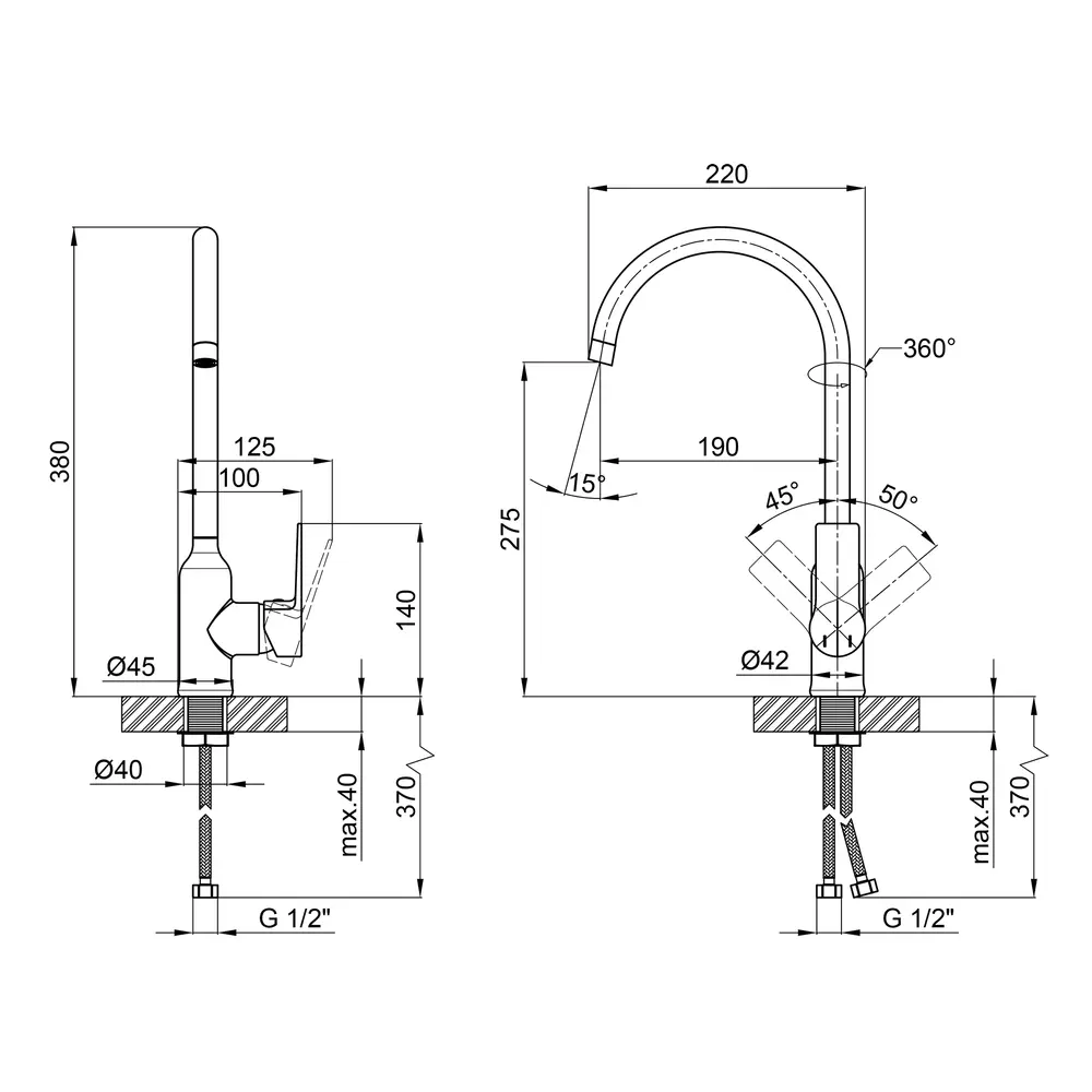 Змішувач, Гнучкий підвід, Кріпильні деталі