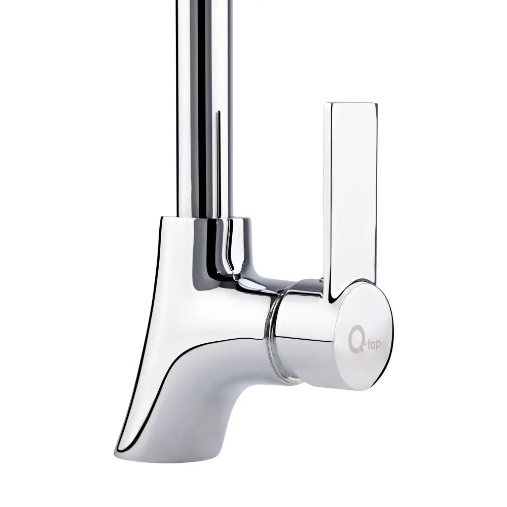 Смеситель для кухни Qtap Form CRM 007F-1 изготовлен из высококачественной пищевой латуни, которая устойчива к воздействию коррозии, ударов и появления трещин. Глянцевое хромированное покрытие не только повышает долговечность смесителя, но и придает ему привлекательности. Смеситель имеет однорычажный управления, с помощью которого можно отрегулировать температуру и напор холодной и горячей воды. Выполнен в современном дизайне, который идеально дополнит интерьер кухни.