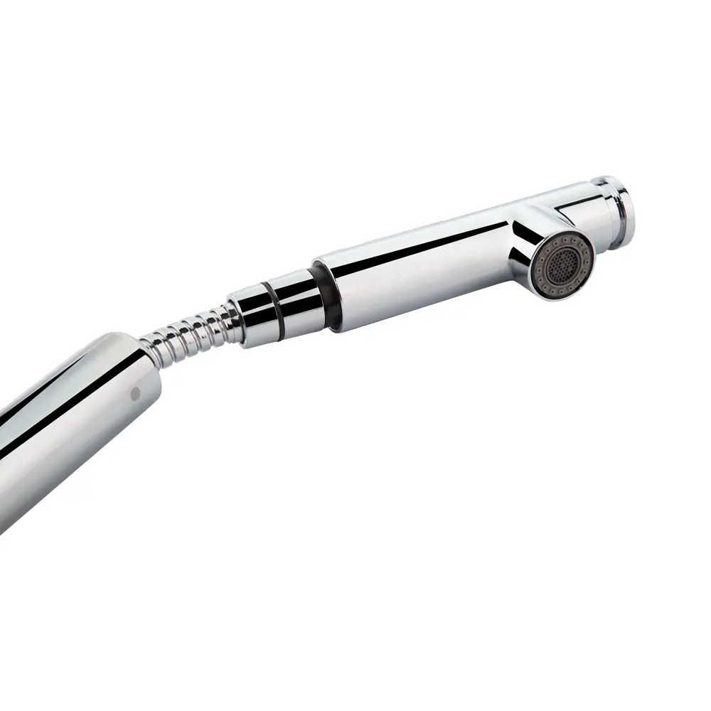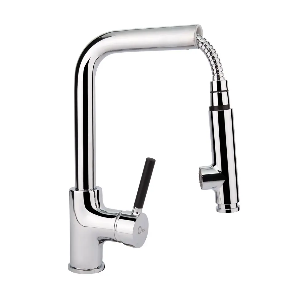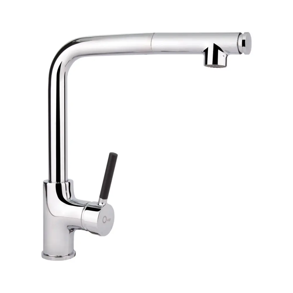 Смеситель выдвижной для кухни Qtap Inspai CRM 007F изготовлен из высококачественной пищевой латуни, которая устойчива к воздействию коррозии, ударов и появления трещин. Глянцевое хромированное покрытие повышает долговечность смесителя. Смеситель имеет однорычажный управления, с помощью которого можно отрегулировать температуру и напор холодной и горячей воды. Выполнен в современном дизайне с Г-образным выдвижным изливом, в котором корпус утечки подключается к шлангу.