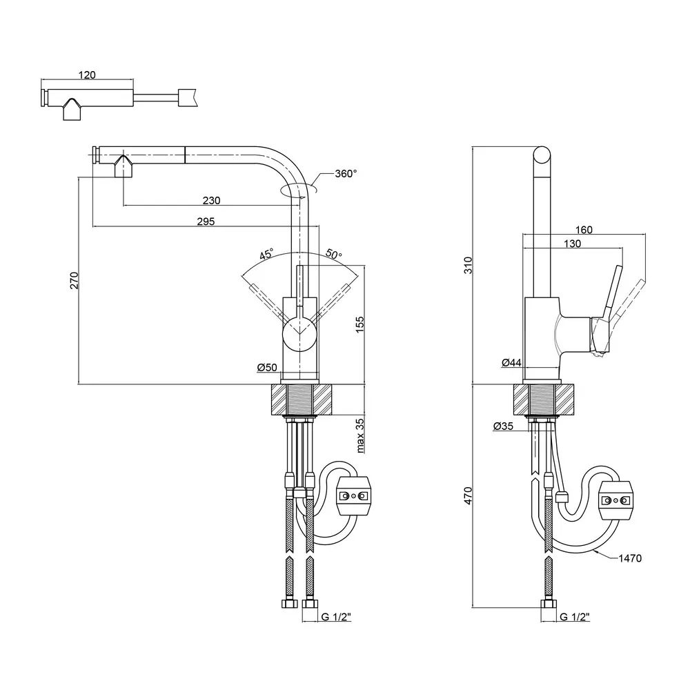 Змішувач, Шланг для висувної лійки, Гнучкий підвід, Кріпильні деталі, Якір