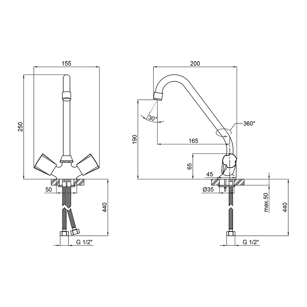 Змішувач, Гнучкий підвід, Кріпильні деталі