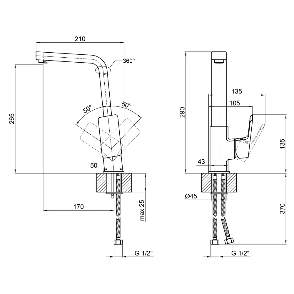 Змішувач, Гнучкий підвід, Кріпильні деталі