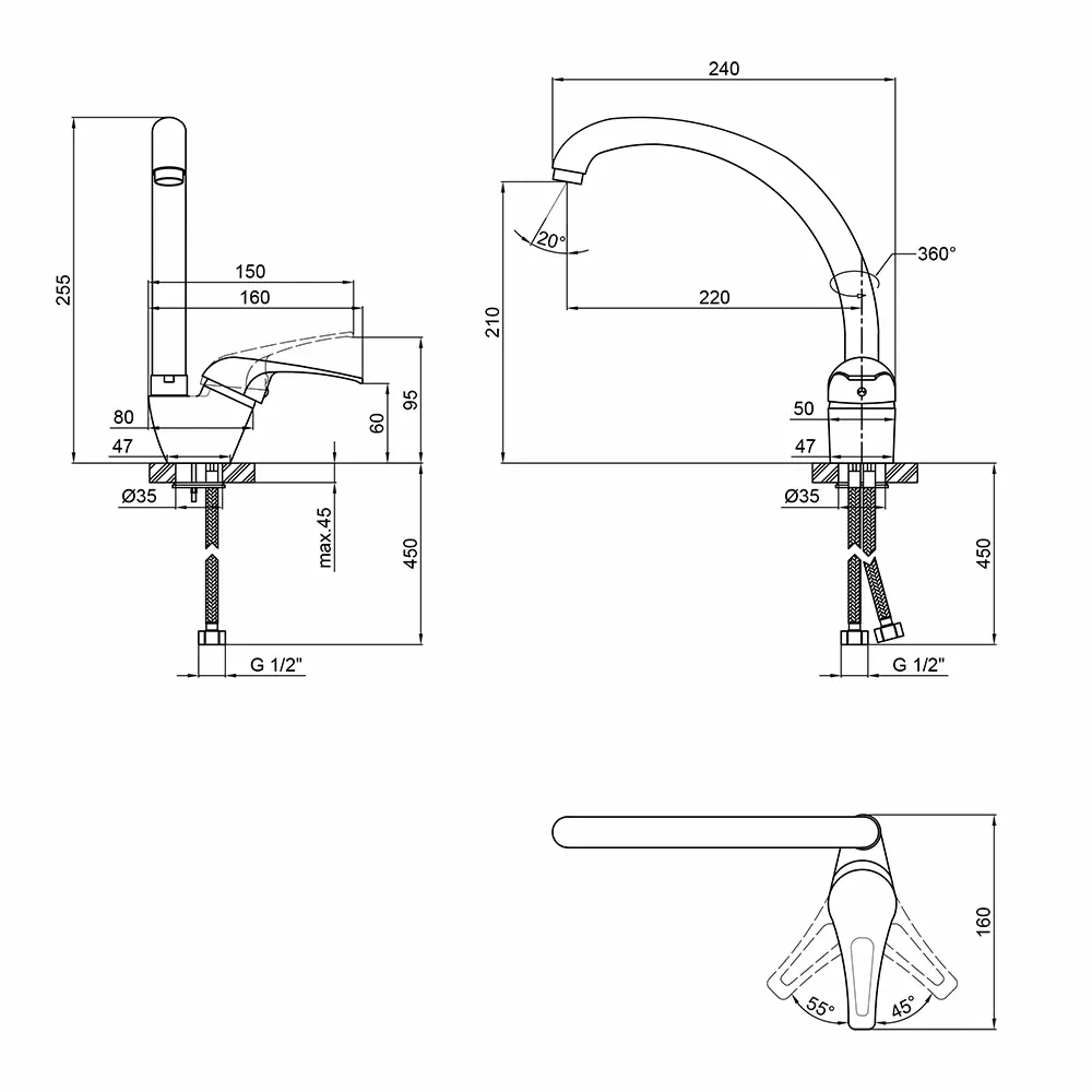 Змішувач, Гнучкий підвід, Кріпильні деталі