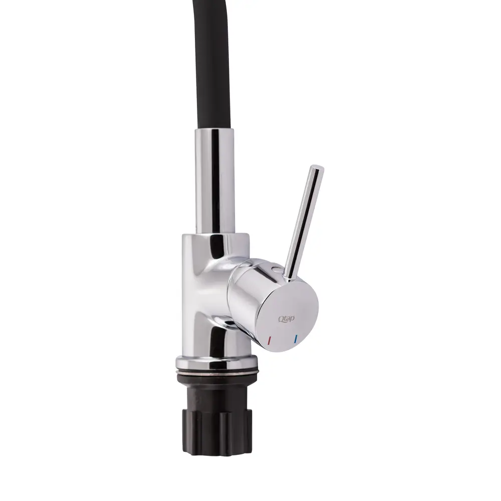 Смеситель рефлекторный для кухни Qtap Spring CRB 007F-1 изготовлен из высококачественной пищевой латуни, которая устойчива к воздействию коррозии, ударов и появления трещин. Глянцевое хромированное покрытие корпуса не только повышает долговечность смесителя, но и придает ему привлекательности. Смеситель имеет однорычажный управления, с помощью которого можно отрегулировать температуру и напор холодной и горячей воды. Выполненный в современном стиле, с рефлекторным излиянием черного цвета в сочетании с хромированным корпусом.