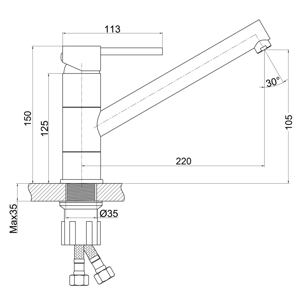 Змішувач, Гнучкий підвід, Кріпильні деталі
