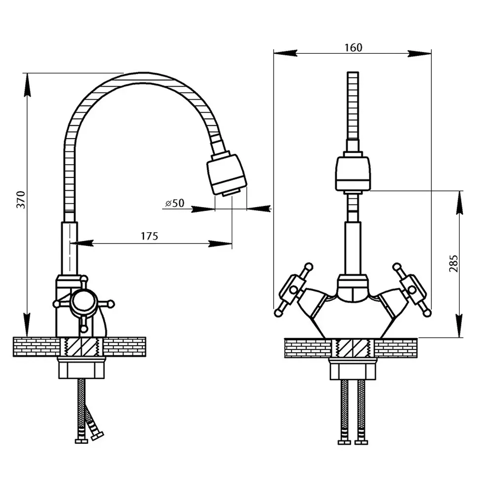 Змішувач, Гнучкий підвід, Кріпильні деталі