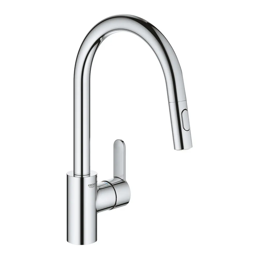 Смеситель выдвижной для кухни Grohe Eurostyle Cosmopolitan 31482003виготовлений с пищевой латуни, не содержащей свинец. Благодаря хромированном покрытию он практичен и имеет оригинальный внешний вид. Выполнен в современном стиле с выдвижным поворотным изливом на 360 °. Такой смеситель не только удобный и практичный, но и на кухне станет настоящей находкой.
