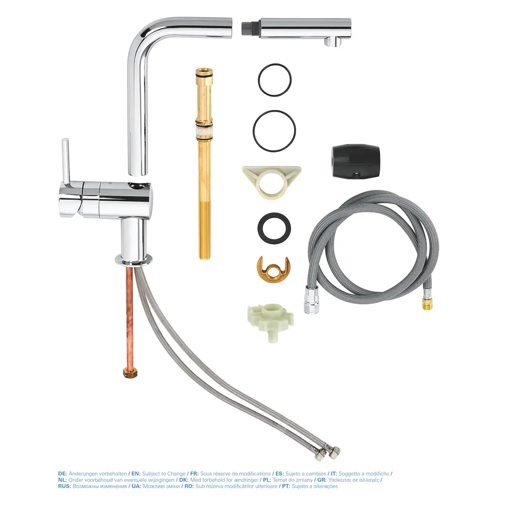 Змішувач, шланг для висувної лійки, гнучка підводка, кріплення, якір.