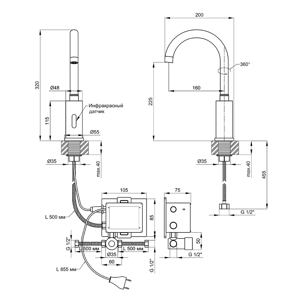 Смеситель бесконтактный для раковины Lidz (CRM) 90 00 080 00 изготовлен из цинка. Глянцевая хромированная поверхность оказывает не только долговечность смесителю, но и оригинальный внешний вид. Управление смесителем происходит с помощью датчиков движения. Расстояние, при которой включается водяной поток - 20-30 см. Подключение воды происходит через гибкие шланги диаметром подключения 1/2 ", которые есть в комплекте поставки. Выполненный в современном дизайне и удобен в использовании.