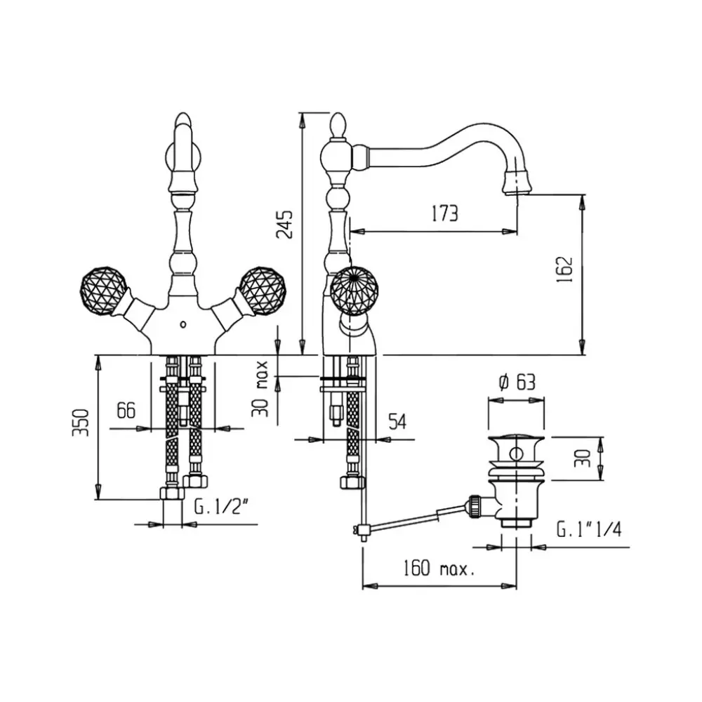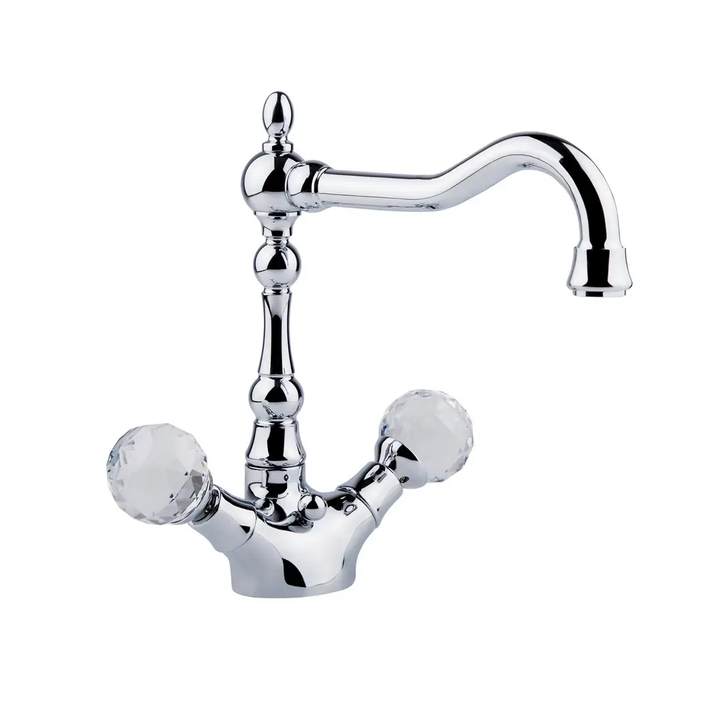 Смеситель для раковины Bianchi Boheme LVBBOM10360ACRM изготовлен из высококачественной латуни, которая устойчива к воздействию коррозии, ударов и трещин. Глянцевая хромированная поверхность придает смесителю оригинального внешнего вида. Смеситель имеет Вентильное управления, с помощью которого можно отрегулировать температуру и напор холодной и горячей воды. Подключение воды происходит через гибкие шланги диаметром пидмикання 1/2 ". Выполненный в ретро-стиле и станет роскошной изюминкой в интерьере санузла.