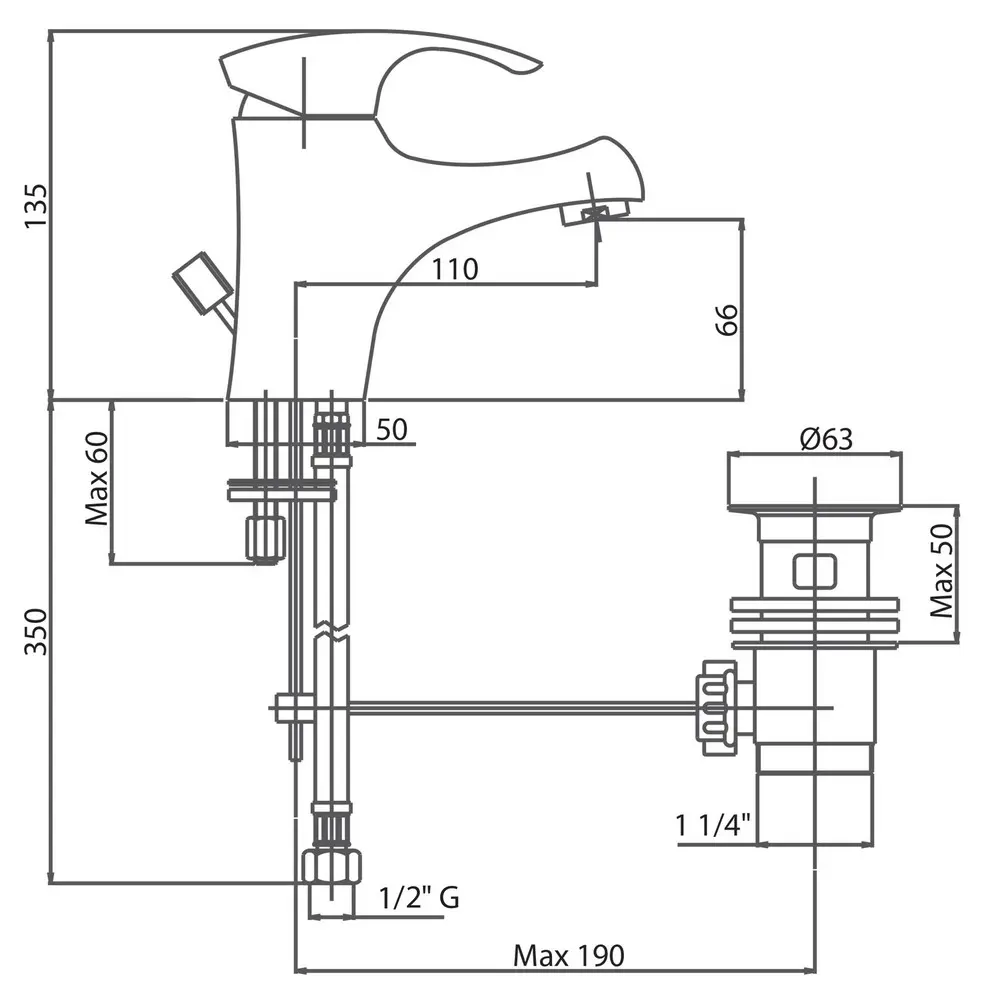 Змішувач, Гнучкий підвід, Донний клапан, Кріпильні деталі