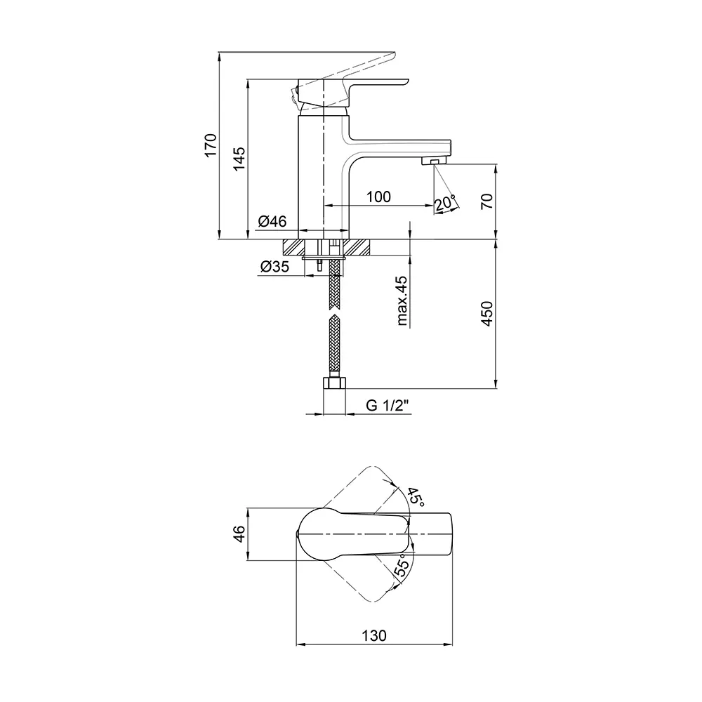Смеситель для раковины Qtap Eco CRM 001 изготовлен из высококачественной пищевой латуни, которая устойчива к воздействию коррозии, ударов и трещин. Глянцевое хромированное покрытие не только повышает долговечность смесителя, но и придает ему оригинальный внешний вид. Интенсивность водного потока и температура регулируются с помощью перемещения рычага. Подключение воды происходит через гибкие шланги диаметром пидмикання 1/2 ". Выполненный в современном стиле, который идеально дополнит интерьер санузла.