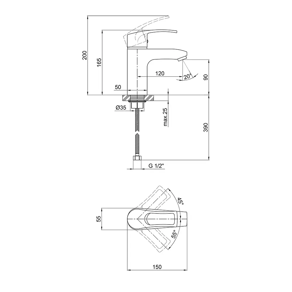 Смеситель для раковины Qtap Hansberg CRM 001F изготовлен из высококачественной пищевой латуни, которая устойчива к воздействию коррозии, ударов и трещин. Глянцевое хромированное покрытие не только повышает долговечность смесителя, но и придает ему оригинальный внешний вид. Интенсивность водного потока и температура регулируются с помощью перемещения рычага. Подключение воды происходит через гибкие шланги диаметром пидмикання 1/2 ". Выполненный в современном стиле, который идеально дополнит интерьер санузла.