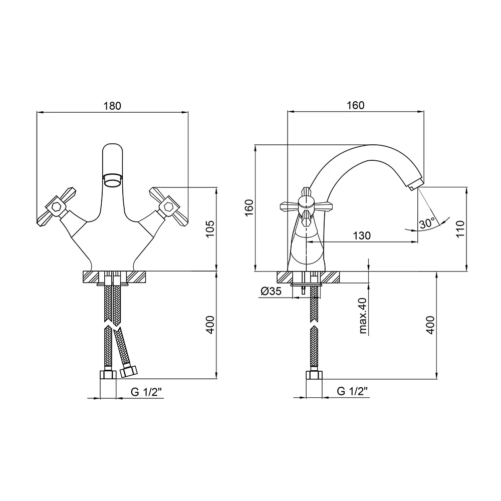 Смеситель для раковины Qtap Liberty CRM 161 изготовлен из высококачественной пищевой латуни, которая устойчива к воздействию коррозии, ударов и трещин. Глянцевое хромированное покрытие не только повышает долговечность смесителя, но и придает ему оригинальный внешний вид. Интенсивность водного потока и температура регулируются с помощью перемещения двух вентилей. Подключение воды происходит через гибкие шланги диаметром пидмикання 1/2 ". Выполненный в современном стиле, который идеально дополнит интерьер санузла