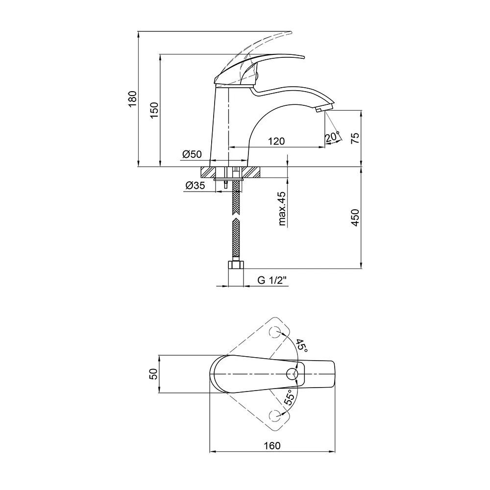 Смеситель для раковины Qtap Mars СRM 001 изготовлен из высококачественной пищевой латуни, которая устойчива к воздействию коррозии, ударов и трещин. Глянцевое хромированное покрытие не только повышает долговечность смесителя, но и придает ему оригинальный внешний вид. Интенсивность водного потока и температура регулируются с помощью перемещения рычага. Подключение воды происходит через гибкие шланги диаметром пидмикання 1/2 ". Выполненный в современном стиле, который идеально дополнит интерьер санузла.
