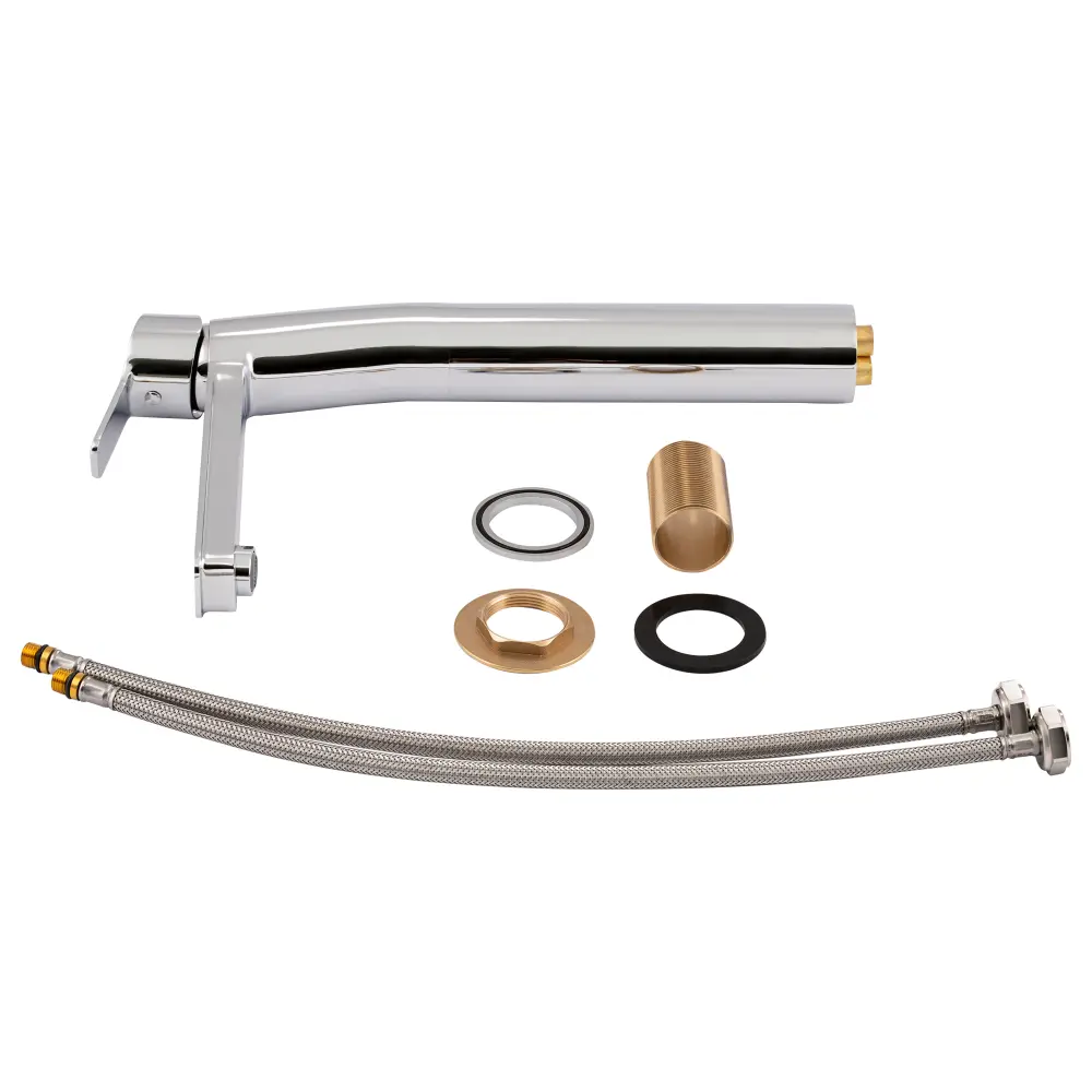 Смеситель для раковины Qtap Zdenek 1032H102C изготовлены из высококачественной пищевой латуни, устойчива к воздействию коррозии, ударов и трещин. Глянцевое хромированное покрытие не только повышает долговечность смесителя, но и придает ему оригинальный внешний вид. Интенсивность водного потока и температура регулируются с помощью перемещения рычага. Подключение воды происходит через гибкие шланги диаметром пидмикання 1/2 ". Смеситель изготовлен в современном стиле.